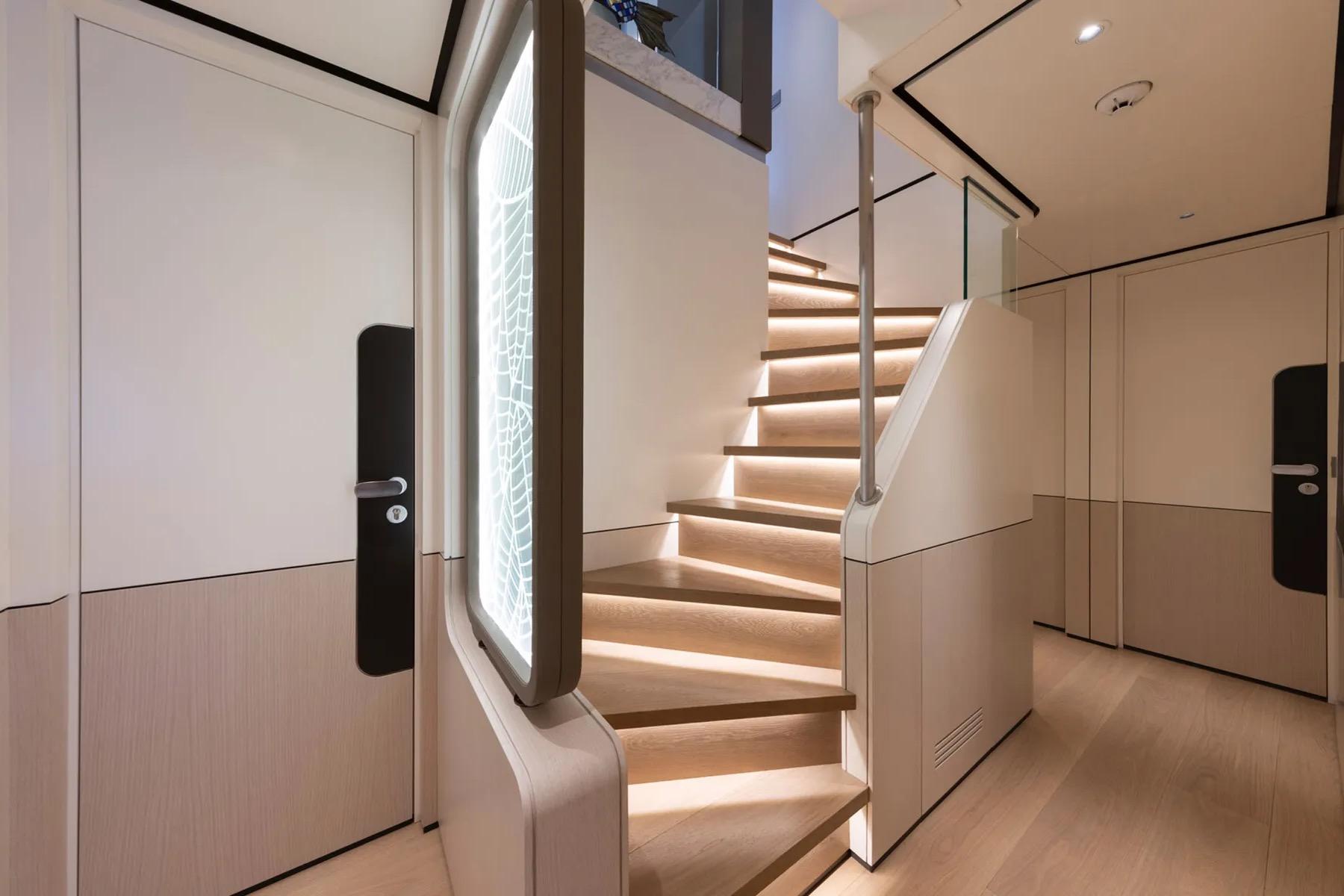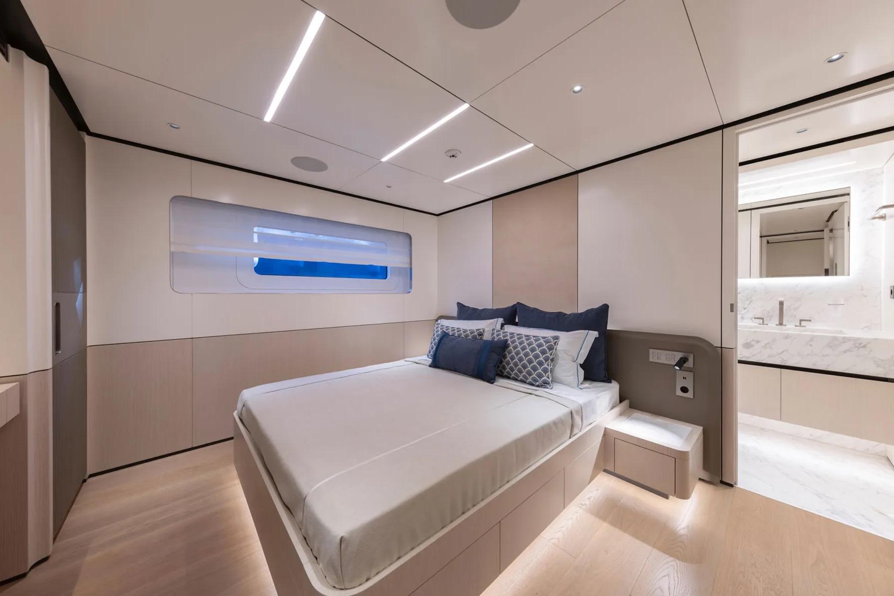 Offering a transoceanic range of over 4,000 nautical miles and equipped with zero-speed stabilisers, BEE ensures smooth cruising and stable anchoring in any conditions. Her generous 299 GT volume is thoughtfully arranged to accommodate up to 10 guests in 5 luxurious staterooms, including a full-beam master suite on the main deck, complemented by comfortable crew quarters for 6.