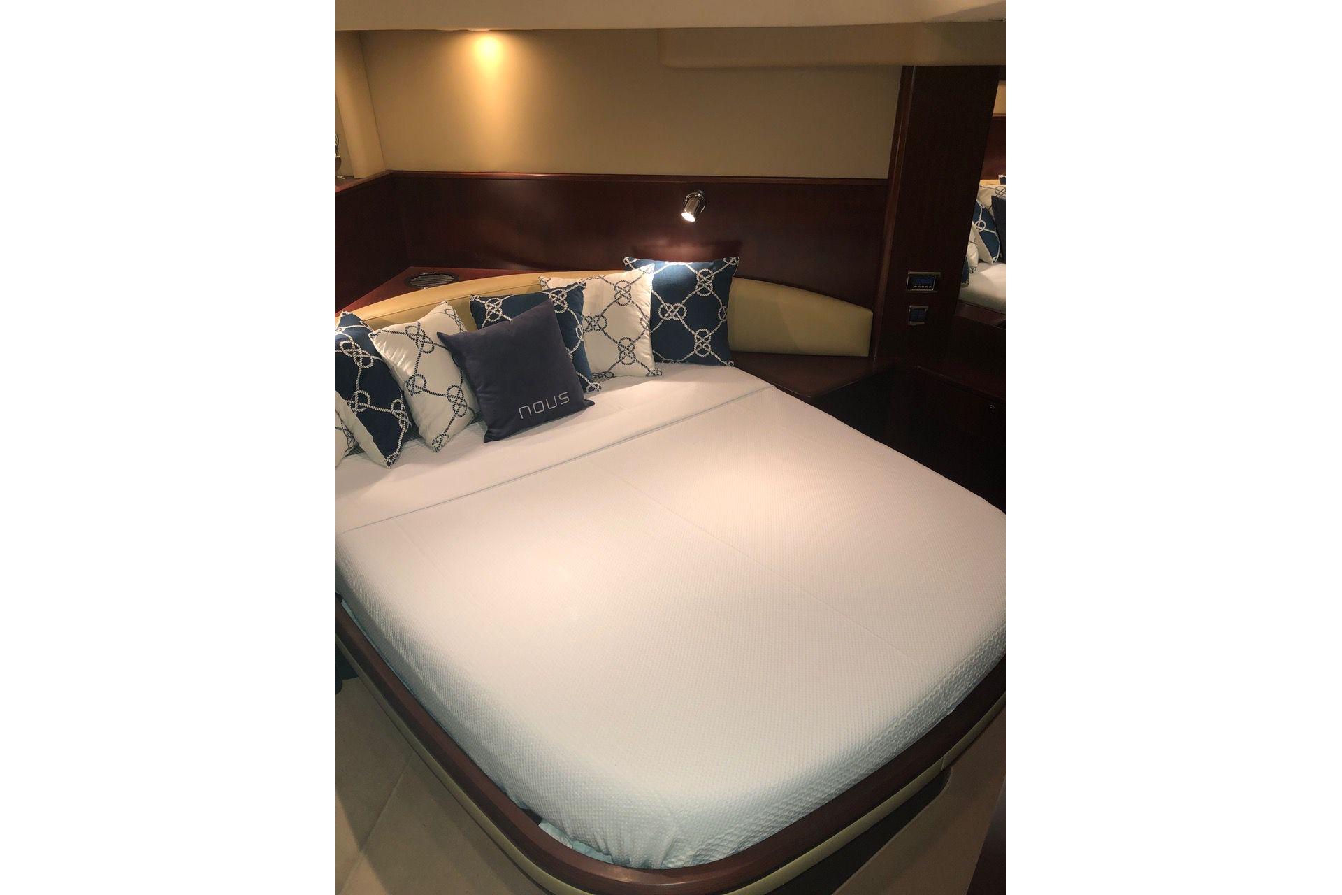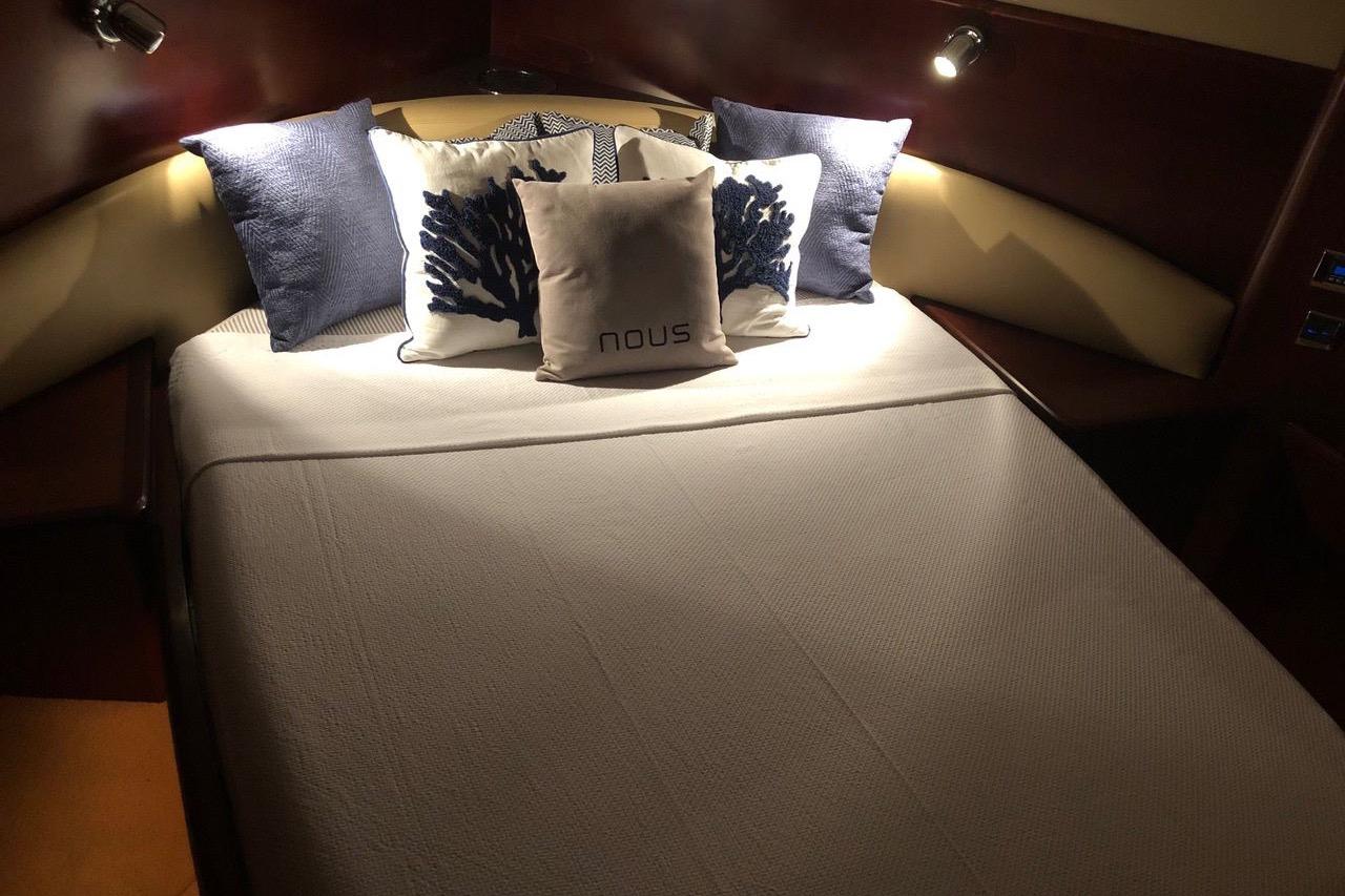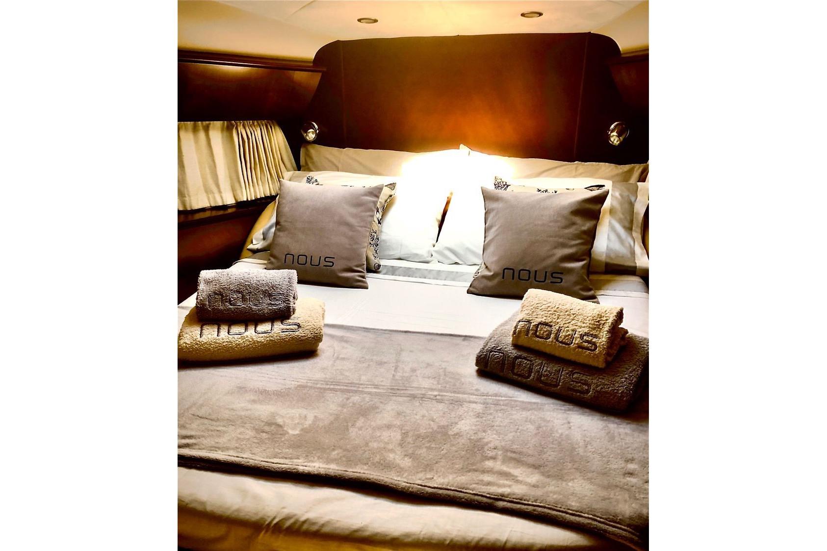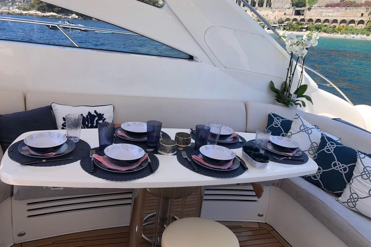 Avec ses 18,87 m de longueur et 4,62 m de largeur, il offre des espaces extérieurs généreux comprenant un cockpit entièrement équipé avec barbecue, machine à glaçons, réfrigération et toit ouvrant électrique, parfait pour profiter pleinement de la vie en mer.